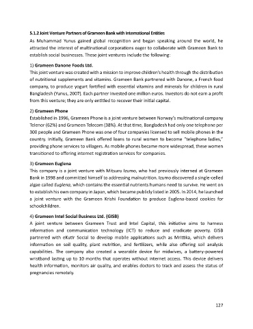 5.1.2 Joint Venture Partners of Grameen Bank with International Entities
