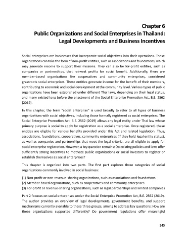 Part 2 focuses on social enterprises under the Social Enterprise Promotion Act, B.E. 2562 (2019).