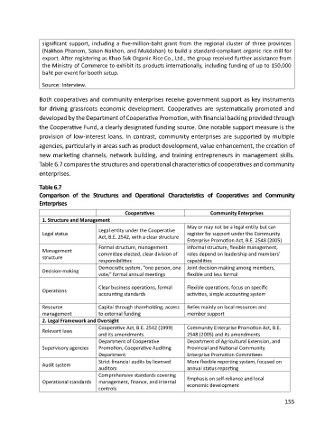 Table 6.7 compares the structures and operational characteristics of cooperatives and community