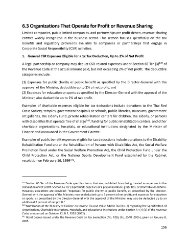 A legal partnership or company may deduct CSR-related expenses under Section 65 Ter (3) 139 of