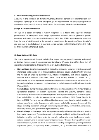categories: (1) the age of the social enterprise, (2) the organizational life cycle, (3) subgroups of