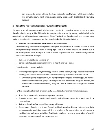 ThaiHealth may consider initiating social enterprise development in schools to instill a social