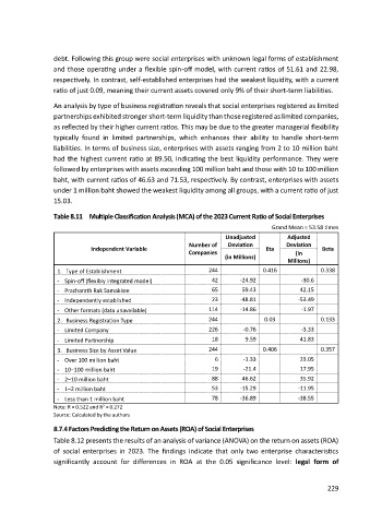 Table 8.11 Multiple Classification Analysis (MCA) of the 2023 Current Ratio of Social Enterprises