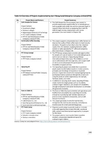 Table 9.4 Overview of Projects Implemented by Sarn Palung Social Enterprise Company Limited (SPSE)