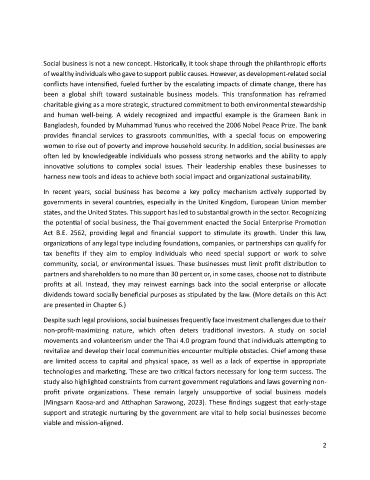 the potential of social business, the Thai government enacted the Social Enterprise Promotion