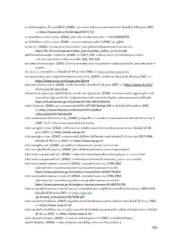 ส านักงานนโยบายและยุทธศาสตร์การค้า. (2567). กาแฟไทยร้อนแรง! ตลาดโตต่อเนื่อง ดันส่งออกพุ่ง. ฐานราก. กระทรวงพาณิชย.