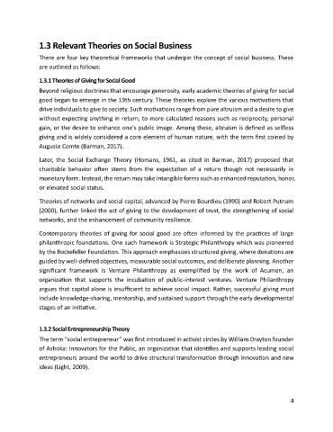 There are four key theoretical frameworks that underpin the concept of social business. These