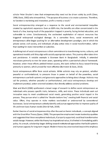 scholar Peter Drucker’s view that entrepreneurship need not be driven solely by profit (Dees,
