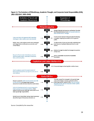 Figure 2.1 The Evolution of Philanthropy, Academic Thought, and Corporate Social Responsibility (CSR), 1862–2010 (B.E. 2405–2543) Source: Compiled by the researcher 28