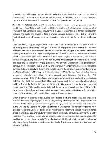 ultimately led to the enactment of the Social Enterprise Promotion Act, B.E. 2562 (2019), followed