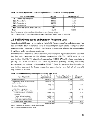 Table 2.1 Summary of the Number of Organizations in the Social Economy System