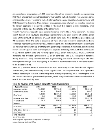 baht. Of this amount, 56 percent, or 72.34 billion baht, came from donations (see Table 2.3).